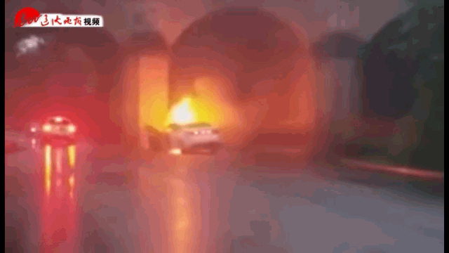 轿车猛撞桥墩后起火,