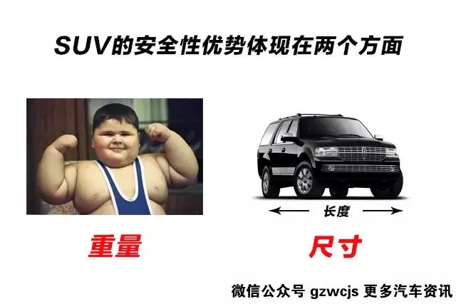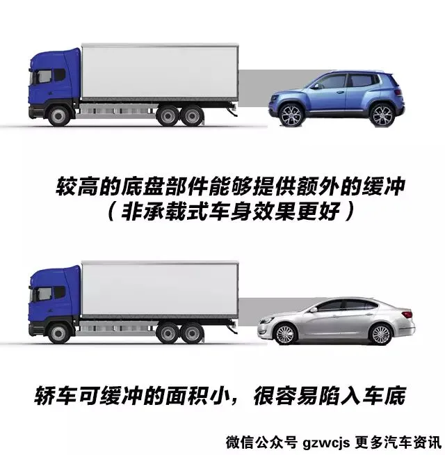因此,SUV受到的冲击力也要比轿车更小