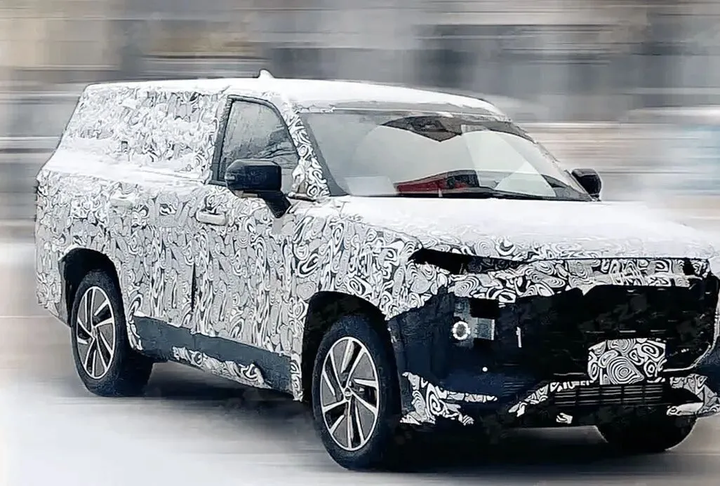 先看外观,这个车一.出来我第.一反应.就是:这是真往全尺寸硬派SUV那个方.向走了。车身明显比风.云T11还要大一圈,侧.面特别.高,离地间隙也大,看谍照那种姿态,就不是城市SUV那种“假壮”。
