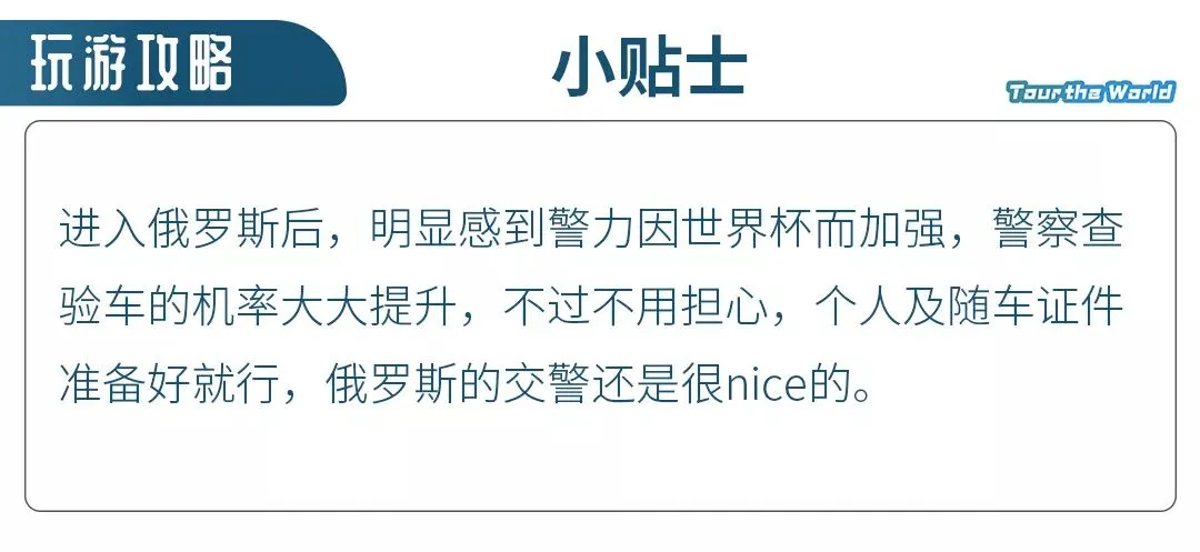 而对驾驶者来说,长途驾驶最重要的就是安全至上,具体来说同伴们需要互相照应,避免疲劳驾驶,如果发现驾驶员有疲劳走神的情况,应当果断换人或是停在安全地带,稍作休息后再继续上路。还好俄罗斯的路上加油站尚算频密,且路上的加油站大多具备干净整洁的卫生间和物资丰富的士多。