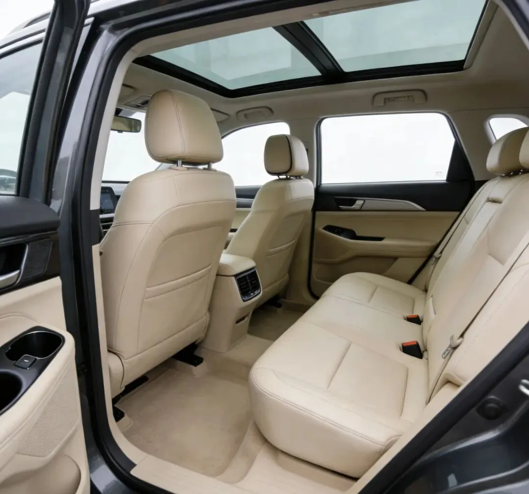 后备厢常规容积545L,满足日常购物、通勤装载需求,后排座椅按6:4比例放倒后,空间大幅扩展,婴儿车、行李箱、露营装备等大件物品均可轻松容纳,家用、出游全场景适配。全景天窗采光通透,车内更显敞亮;前挡风与前排双层隔音玻璃有效隔绝外界噪音,配合多色氛围灯、哈曼卡顿8扬声器音响、智能空气净化、后排独立空调,从视觉、听觉、触觉全方位提升舒适体验,让日常代步也充满质感。