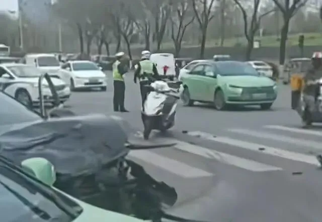 我后来听附近便利店的王姐说,她当时正低头理货,冷不丁听见“砰”的一声,那动静大得离谱,连店里的玻璃都跟着颤。“跟放炮似的,但比放炮闷,震得人耳朵嗡嗡响。”她放下手里的东西就往外跑,到门口一看,好家伙,两辆车已经撞得不成样子。黑轿车车头瘪进去一大块,引擎盖翻着翘起来,活像被谁掀了盖儿;出租车更惨,整个车身转了一百八十度,侧门都飞了,零件散了一地,看着就让人腿软。