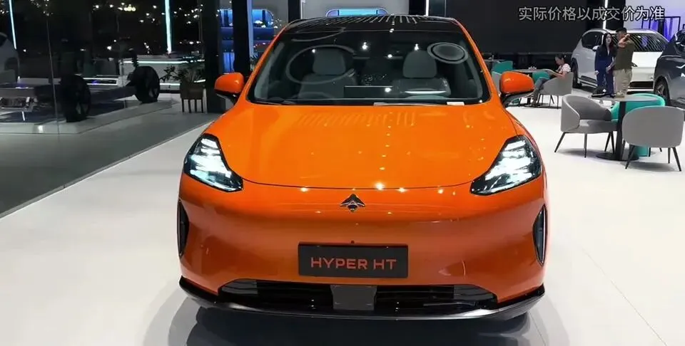 昊铂HT前脸,橙色车身,LED大灯。