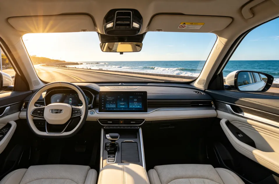 博越L的设计,走的是“稳健的科技感”路线。它不像某些车型那样用夸张的线条搏出位,也不因循守旧。光波涟漪前脸、脉冲贯穿式LED灯带、棱角分明的车身轮廓——这一切都精准踩在了主流消费者对“现代、大气、有点科技感但不过分”的审美点上。它追求的不是让人“一眼惊艳”,而是让人“越看越顺眼”,这是一种更高级、也更稳妥的设计哲学。