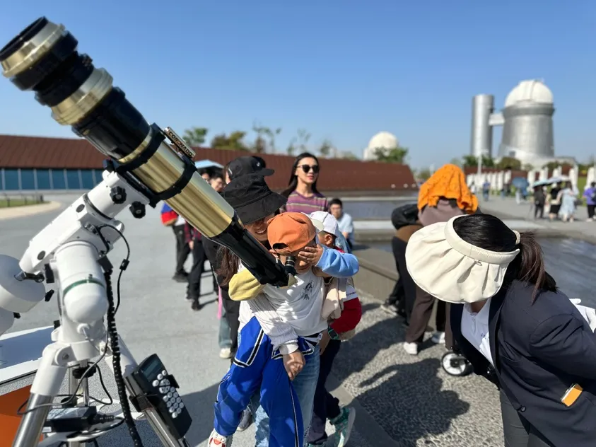 从前,我们只需要看云识天气,但在卫星、导航、互联网构建的今天,我们需要学会“抬头看恒星”。每一次地磁暴预警,都是在提醒我们:人类文明并非孤立存在,我们始终运行在母恒星的呼吸节奏之中。因此,由于太阳的种种活动,上海天文馆宇宙侦探社将在本周末继续招募“太阳大侦探”!在4月5日中午12:00,本社社长将在地下一层侦探面试点,向各位来馆的大朋友小朋友派发“太阳调查任务”,完成任务即可将获得特别纪念徽章!在天气晴好的条件下,本周末下午,我们还会在天文馆户外场地架设专业的望远镜,邀请你来一同观测太阳活动,千万不要错过哦!2号门外,找到看太阳专用望远镜⬆️(千万不能直接目视太阳哦!)今日互动: