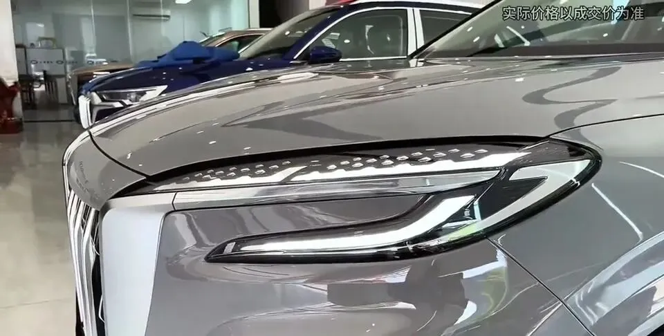 红旗HS3这套设计,其实非常典型的红旗风格:直瀑式进气格栅+红旗立标,远远一看就有辨识度。