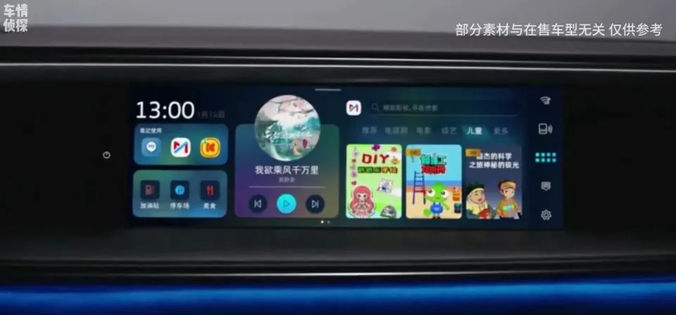 车内换装了15英寸2K悬浮中控大屏和11.6英寸副驾娱乐屏,核心是搭载了高通8155芯片,车机流畅度和功能丰富度相比老款有了代际提升。