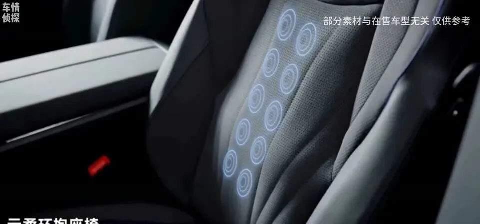 配置上也非常大方,入门版就配备了前排座椅加热、通风、按摩,还引入了带电动腿托的”女王副驾”。高配更是配备了9安全气囊。