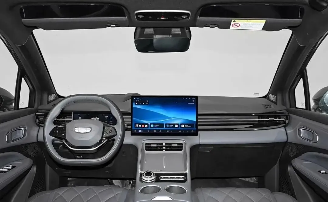 进入车内,博越REV主打环抱式智能座舱,设计简约大气,用料扎实,兼顾科技感与家用舒适性。中控台采用分层式设计,核心配置方面,配备12.3 英寸全液晶仪表 + 13.2 英寸悬浮式中控屏,双联屏布局科技感满满,车机搭载吉利最新银河 OS 系统,支持 5G 网络、高德导航、语音交互、车联网、OTA 升级等功能,语音控制覆盖导航、空调、车窗、音乐等高频场景,响应速度快、识别精准。中控屏下方保留少量物理按键,方便盲操作空调、音量等功能,兼顾科技与实用。空间方面,后备箱常规容积 500L,后排座椅支持 4/6 比例放倒,放倒后容积拓展至 1300L。