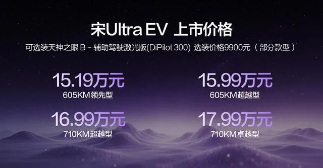 宋Ultra EV的起售价为15.19万元,比很多竞品都要高。传统合资紧凑级纯电SUV或者部分新势力和自主品牌,在这个价格区间内能找到续航并不弱、空间也够大的车型。相比于那些“堆数量”的产品来说,宋Ultra EV直接把所有的吸引家用用户的地方都塞进去了:326马力高性能电机、最高710公里的续航里程、900V高压平台支持超快闪充技术、四驱高配还有自家开发的云辇C智能悬挂系统。再加上150L前备箱、730L后备箱、女王座椅、按摩通风一体、可以全平放倒变床……家用舒适度以及配置堆砌在该价位上属于同级头部。