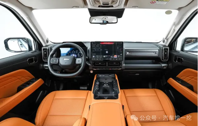 拉开车门,你会感觉这不像一台传统的“糙汉子”越野车。内饰设计很年轻,橙色点缀增添了活力。它聪明地保留了大量物理按键,特别是空调、驱动模式等常用功能。在越野颠簸时,盲操的便利性和可靠性,比在大屏里翻菜单要强一百倍,这点必须给好评。