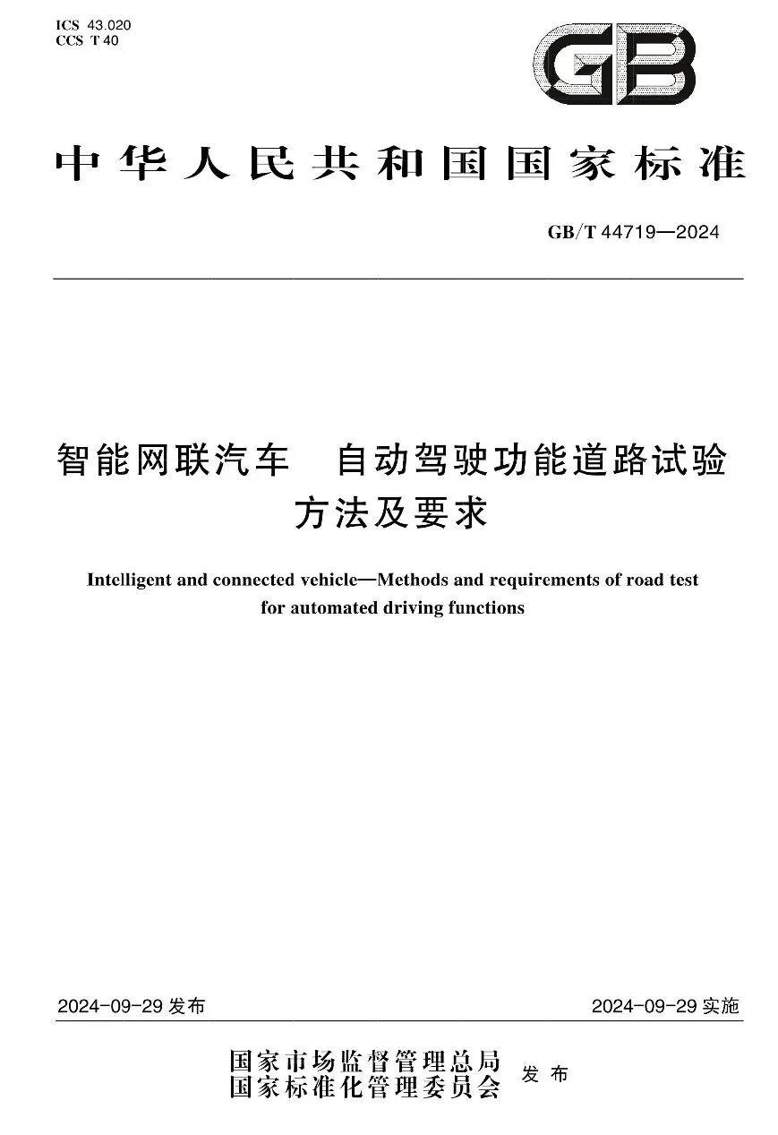 [汽车法规]智能网联汽车自动驾驶功能道路试验方法及要求
