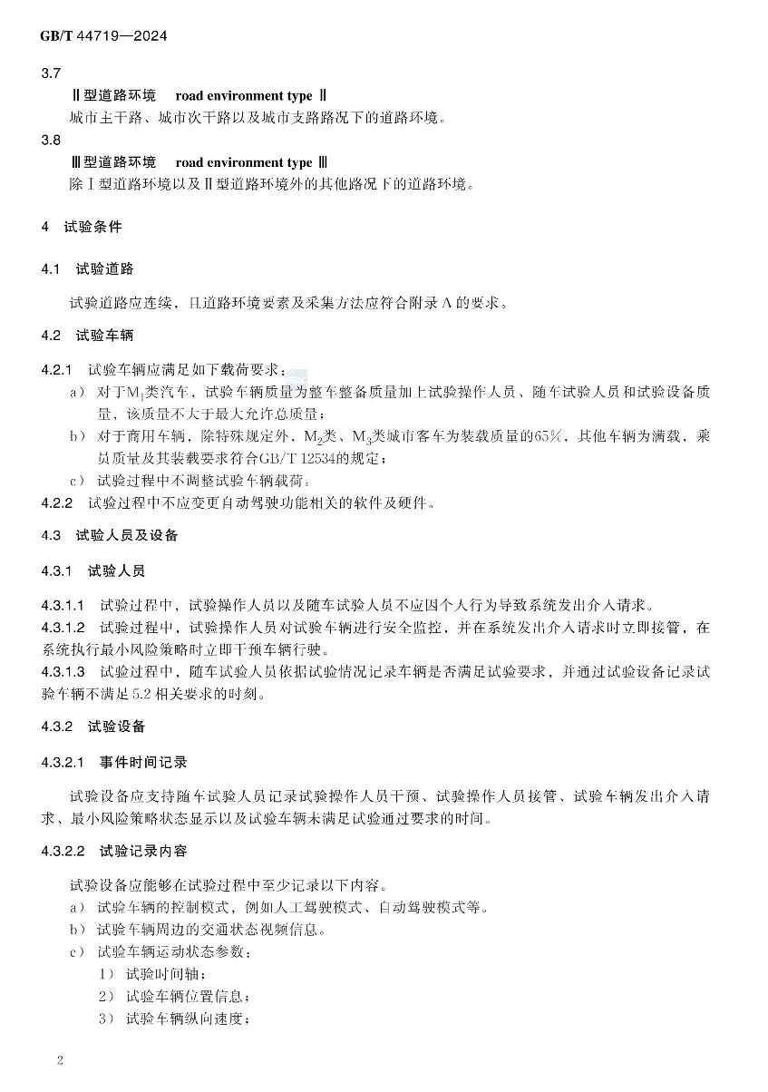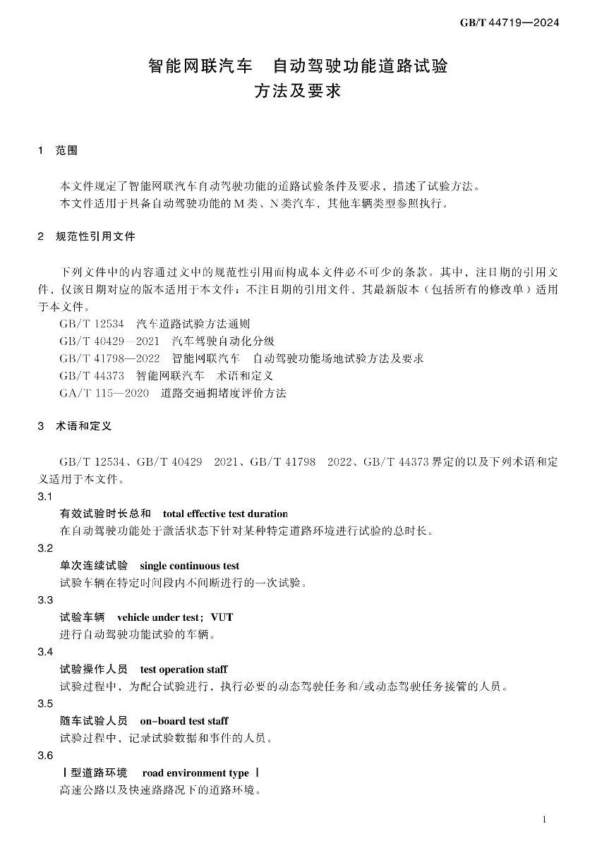 >[汽车法规]智能网联汽车自动驾驶功能道路试验方法及要求