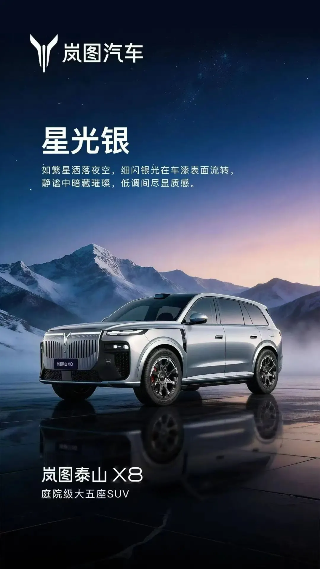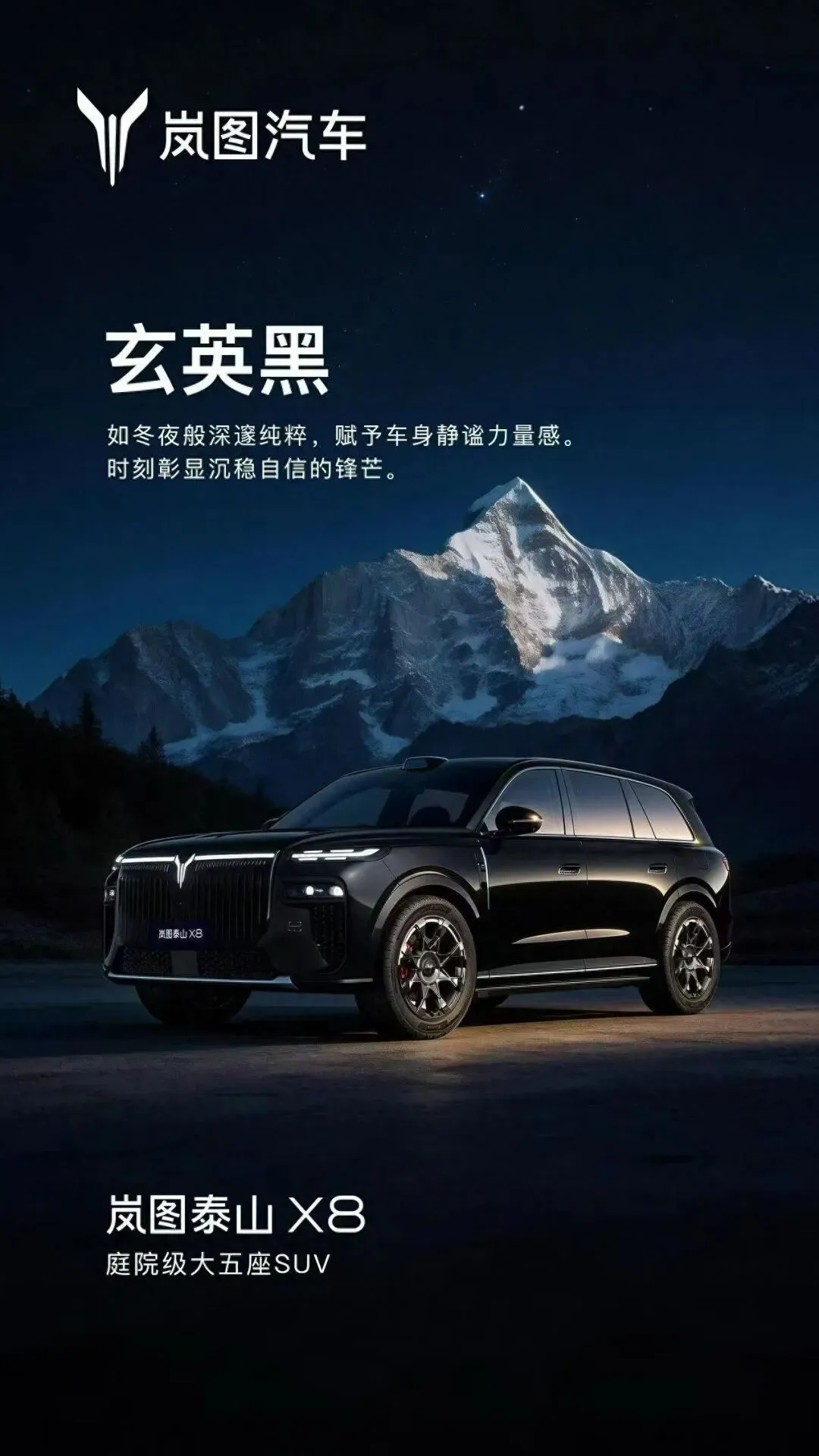 岚图泰山 X8 定位“庭院级大五座 SUV”,新车将首搭华为全新一代智能座舱,并首发多项黑科技,号称大五座 SUV 市场的革新之作。