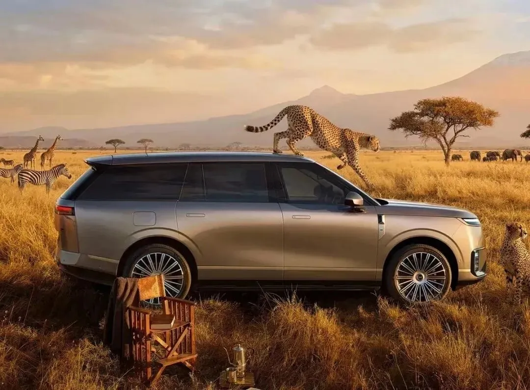 车身尺寸为5265×1999×1800mm,轴距3115mm,空间优势显著。设计上更是独具匠心,融入了不少燃油超一线豪华车型的设计语言,整体风格神似路虎揽胜,在国产SUV中颜值十分突出。