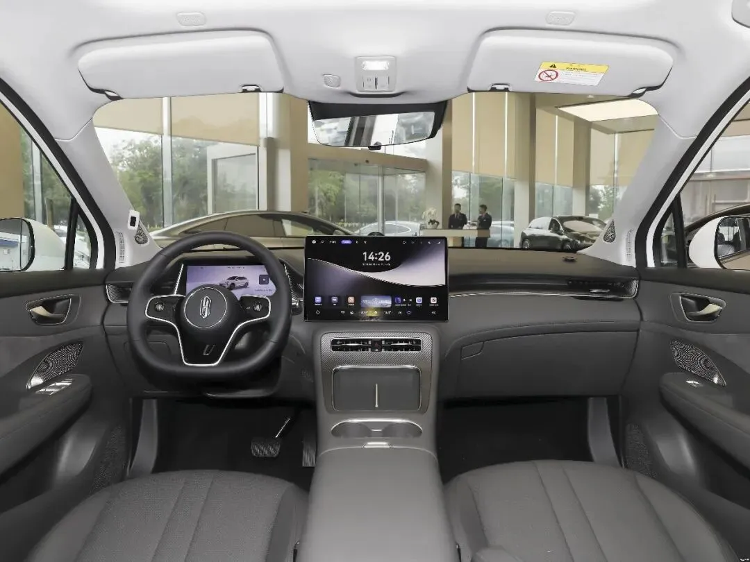 拉开车门,最吸睛的无疑是那块15.6英寸的2K分辨率悬浮式中控大屏。整个中控台布局非常简洁,几乎取消了所有物理按键,功能高度集成于屏幕和语音控制。内饰用料以软性材质和仿皮为主,搭配256色的主动式环境氛围灯,夜间座舱氛围感营造得不错。
