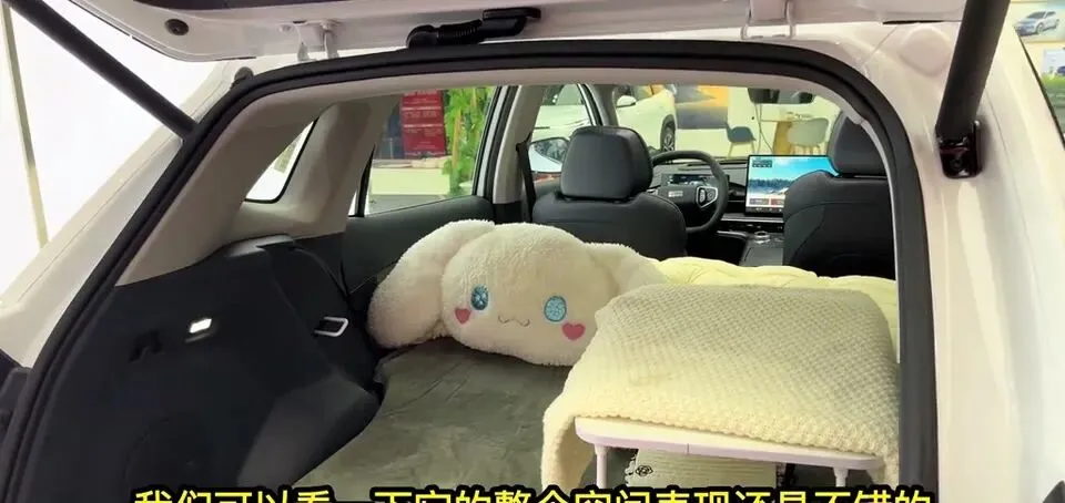 座椅放倒以后,直接可以当床车用。