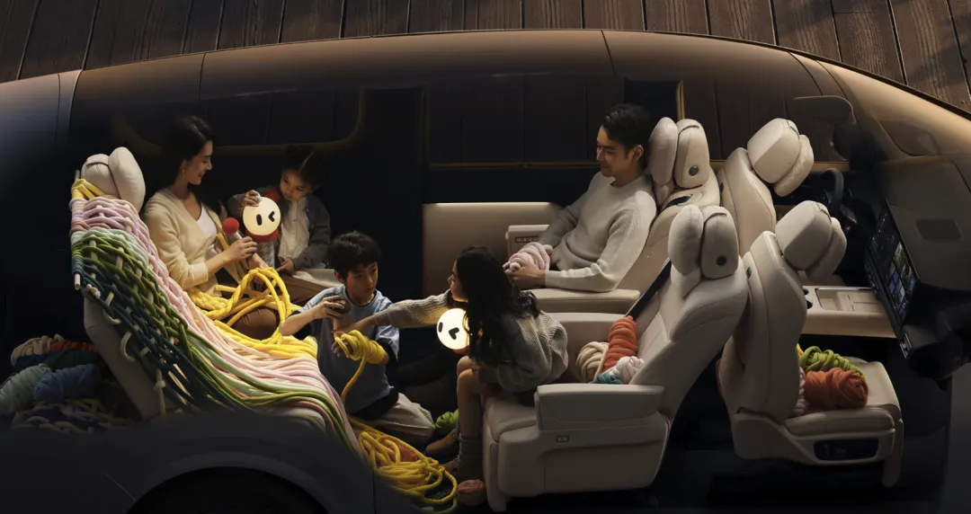 智界V9:马上上市,把旋转座椅当核心卖点。45°上下车、90°观景、180°对坐会客,跟理想的思路很像,商务和家用两头抓。