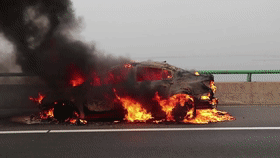>突发,高速一轿车自燃!裕安消防紧急救援...