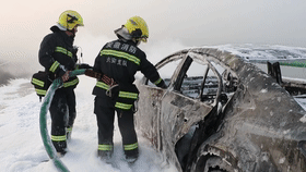 突发,高速一轿车自燃!裕安消防紧急救援...