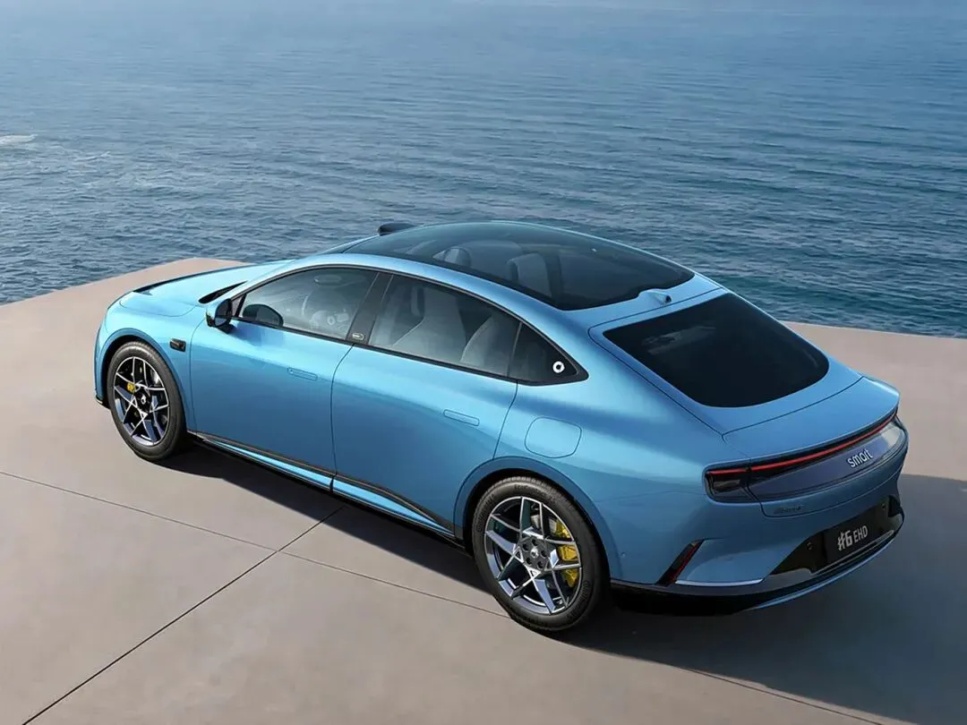 回顾外观,新车设计灵感来源于鲨鱼,车头采用“仿生鲨吻式贯穿风道”的设计,应用封闭式前脸搭配贯穿式灯组,预计支持自定义灯语功能,前包围使用尺寸较大的梯形进气口搭配两侧进气口布局,配合前保险杠两侧垂直布局的导流槽设计,进一步提升车辆的运动属性。车顶前部搭载有激光雷达,将提供高阶辅助驾驶功能。车身侧面及尾部,smart精灵#6 EHD超级电混呈现出溜背式轿跑风格,配备有隐藏式门把手、贯穿式尾灯及四档可调的主动式尾翼,尾灯同样支持自定义灯语。尺寸方面,新车长宽高分别为4906/1922/1508mm,轴距为2926mm,定位中型轿车。