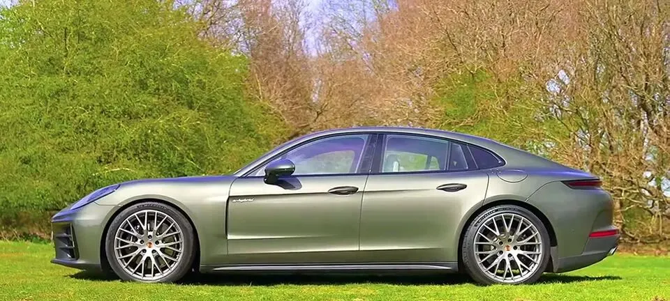 保时捷帕拉梅拉侧面展示,绿色车漆。