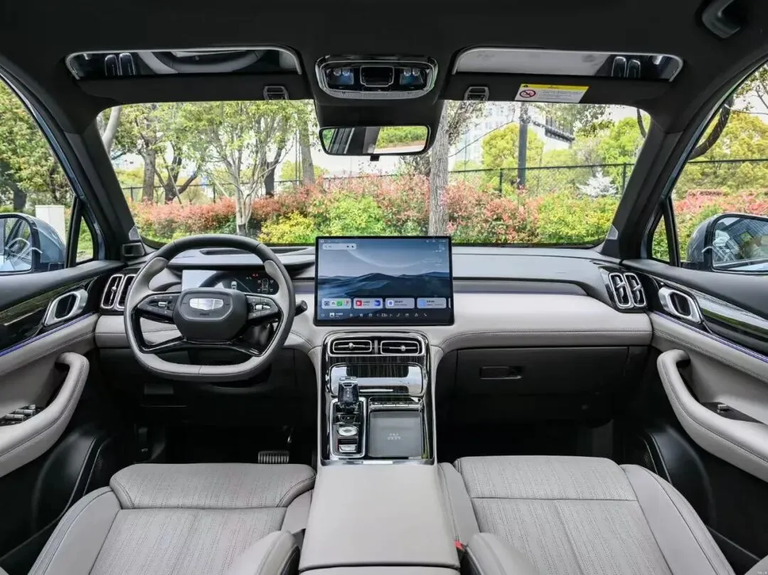 车内标配Flyme Auto智能座舱,具有三屏联动功能,还有25.6英寸AR-HUD抬头显示、16扬声器的Flyme Sound无界之声音响、3D镭雕水晶挡把,副驾座椅具有腿托和一键躺倒功能(女王副驾)。很多新能源车上时髦的配置被直接克隆到这款博越L小蓝灯版燃油SUV上了。