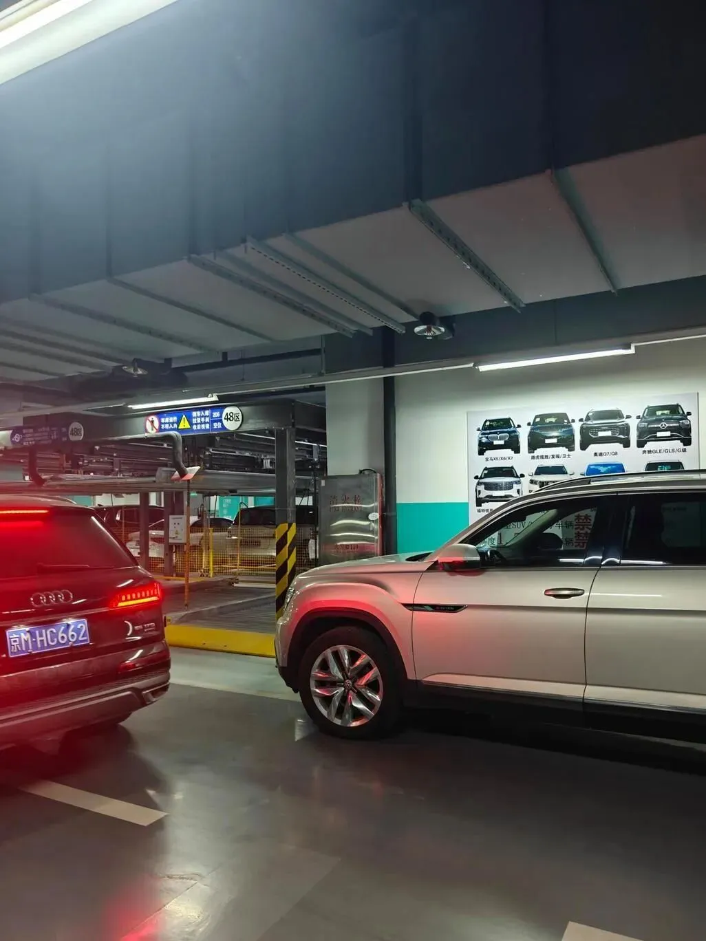 先.说.一个特别真.实的场景。我现在就在一个商场地库,大家听一.下,我打方向.的时候已经很小心了,然后旁边这个柱子,诶,离我真的就一拳多一.点。现在很.多.大SUV,长度.超过5米,宽度接近2米,数据看着没啥,但放.到老小区、商场地库,真的就是“硬塞”。尤其是.侧方位停车,你得来回挪.三四把,后.面还一堆人看着你,那种心理压力,比跑山路还大。