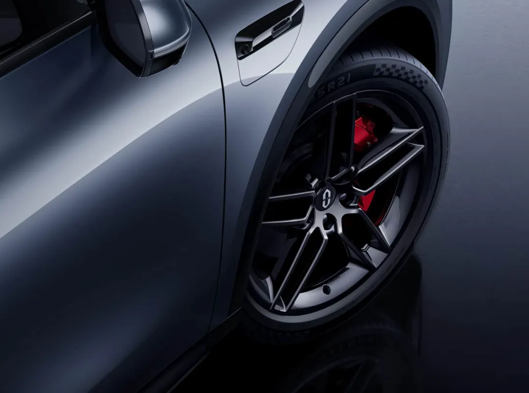车身配色方面,新车提供力挽狂蓝、轻松稳银、人间青醒、烦恼白白、财富紫、黑呦不错、薪响仕橙共7种选择,覆盖主流到个性的需求。车侧运用半隐藏式门把手设计,降低风阻的同时提升了科技感,黑色轮眉与双五辐运动轮圈搭配红色制动卡钳,进一步强化了运动属性,轮圈规格则提供20英寸与21英寸两种,用户可根据需求选择。值得注意的是,车顶搭载激光雷达,尾部配备后向固态激光雷达,为高阶智驾提供了坚实的硬件基础。