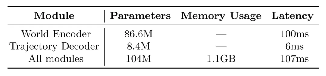 如果是VLA,即使参数有20亿,是Latent-WAM的19倍,但因为模型架构简洁,即使使用性能远低于A100的Jetson Thor,不做任何优化也能做到530毫秒,若换成A100,估计可以做到300毫秒。