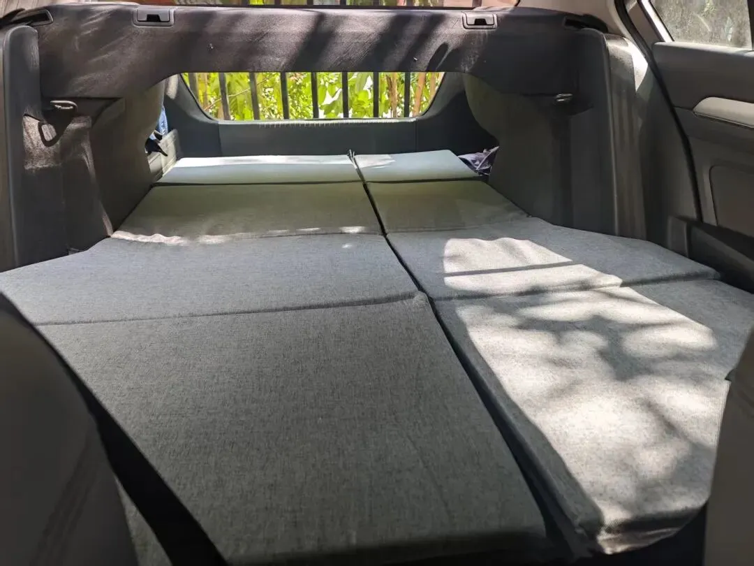 接着就是买一张可折叠的床垫,大家可自行找寻各自车型匹配的垫子,而且可以按后排座椅4/6分开合组合的。不要买充气的,轿车高度较小;腰不好的人,最好是买带整体硬板的。这样基本上就完成了床铺改造了。