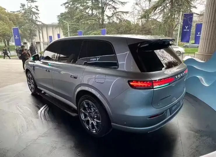 尾部方面,岚图泰山X8同样采用了家族式语言打造,顶部带有熏黑扰流板,中部则配备了贯穿式灯组,并使用了岚图英文LOGO标识装饰,并且可以看到还带有小蓝灯的设计,点亮后具有不错的辨识度。