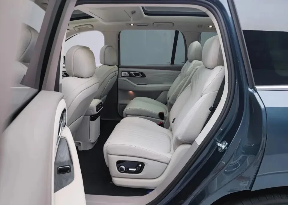 车身真大。我身高178,坐进第三排,腿还能往前伸一拳,不是蜷着。二排两个独立座椅,带腿托,按摩是点按式,不是震动骗人。我妈试坐完说:“比我家老奥德赛舒服,空调出风软,不吹头。”她没提智能,就认这个——舒服,不晕车,孩子能躺平睡觉。