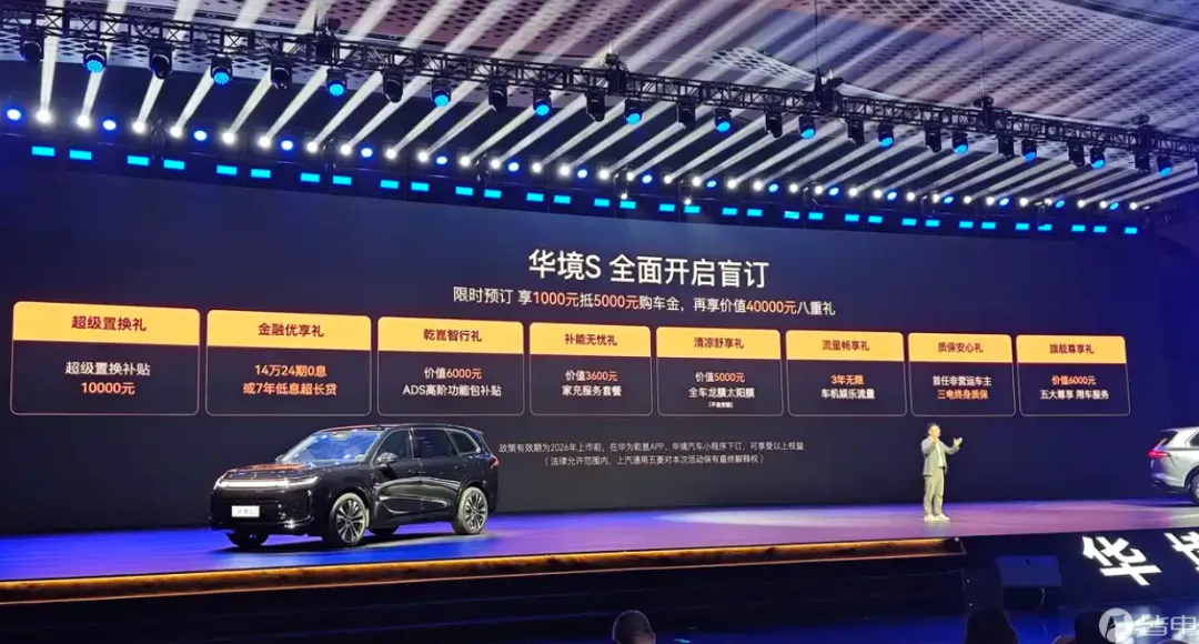 4月7日消息,五菱汽车官方发布,旗下全新大型六座SUV——华境S正式开启盲订。限时预订可享1000元抵5000元购车金,同时可享40000元八重礼。新车为五菱与华为深化战略合作的首款旗舰车型,基于天域架构L平台打造,并采用插混系统。