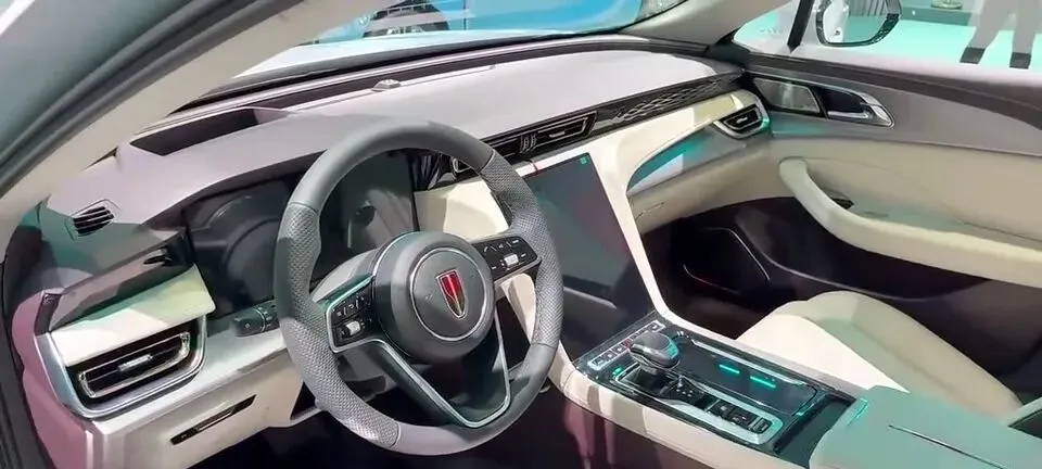 但真正让我改一点想法的,不是前脸那些符号,而是坐进车里之后,它并没有只停留在“外面有气势”。内饰“使用了大量的皮质材料,并且加入了银色装饰面板”,再配上“12.3英寸嵌入式液晶仪表和12.6英寸竖状中控大屏”,那种“豪华的科技座舱”是能接上外观调性的,不会让人觉得前后断开。