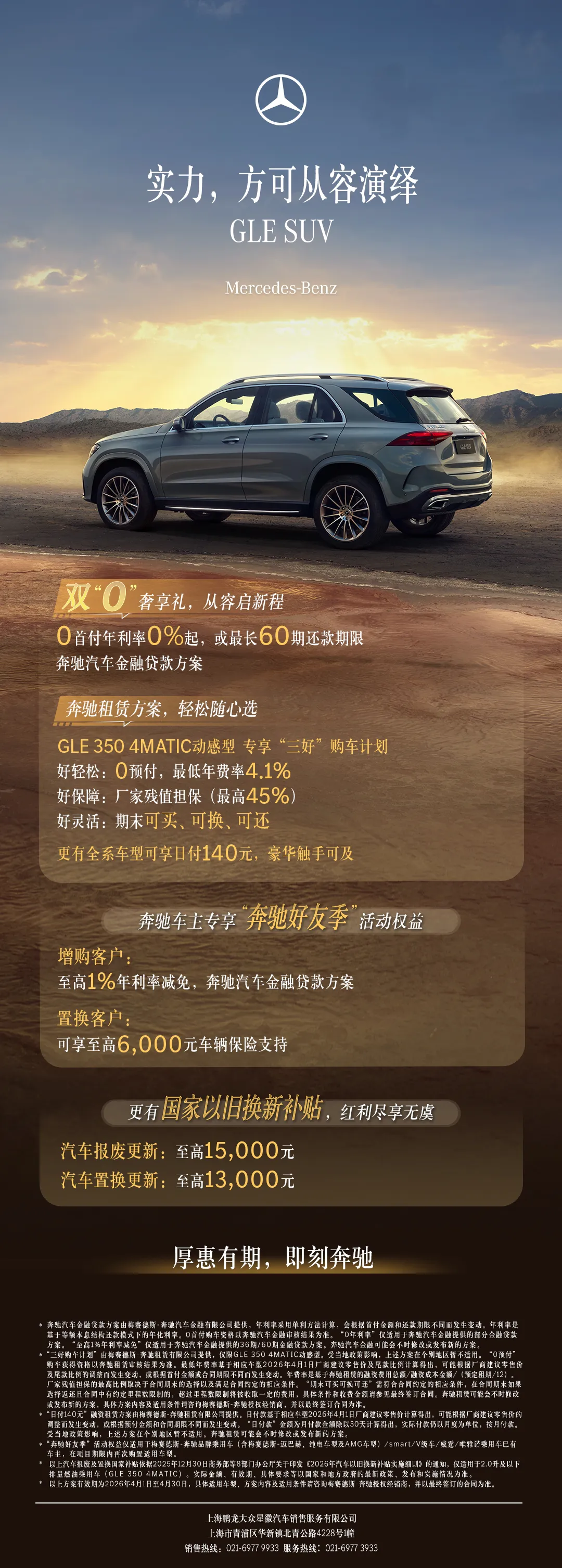 奔驰GLE SUV限时礼遇,驾享奔驰