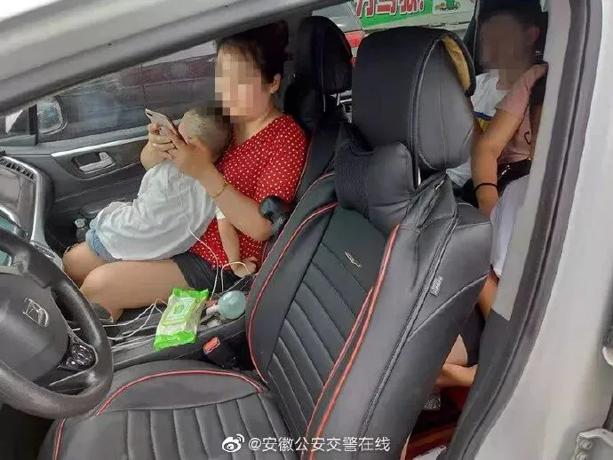 另一小孩被抱在副驾驶,无任何安全保护措施