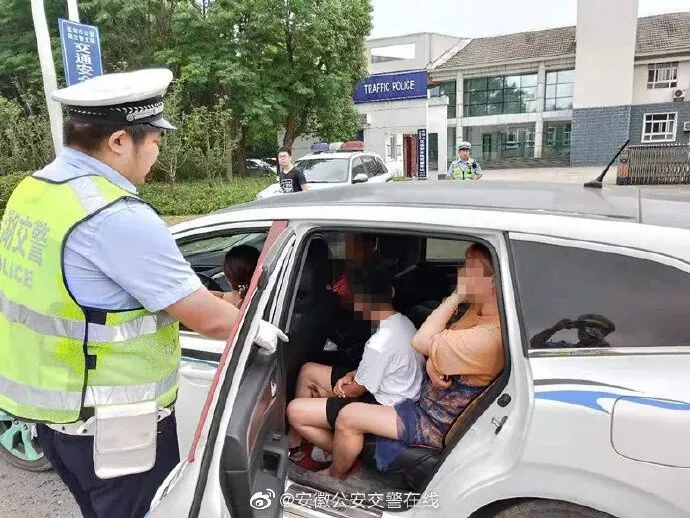 近日,宿州高速四大队民警执勤时透过一辆小车前挡玻璃发现后座似乎很拥挤,随即拦停该车辆进行检查。