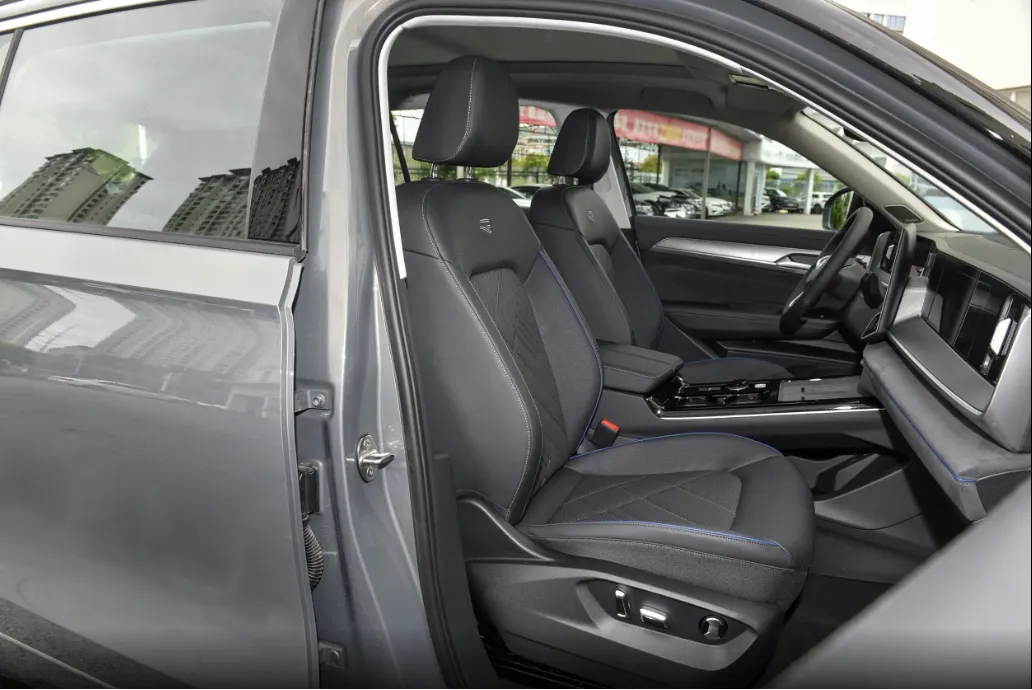 座椅方面,全系都是仿皮座椅,主驾是电动调节,前后、靠背、高低都能调,用着很方便。副驾是手动调节,高低只支持2向,日常够用但没那么顺手。后排座椅能调靠背角度,坐久了不累。前排座椅加热是选装,想要冬天暖乎乎得额外加钱,座椅记忆、老板键这些花里胡哨的功能都没有,就是主打一个家用务实,够用就好。