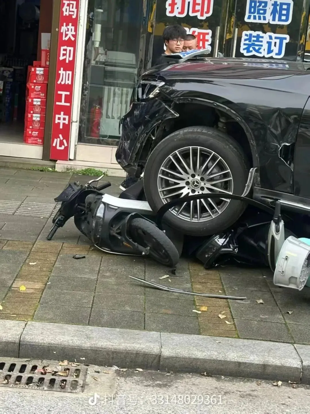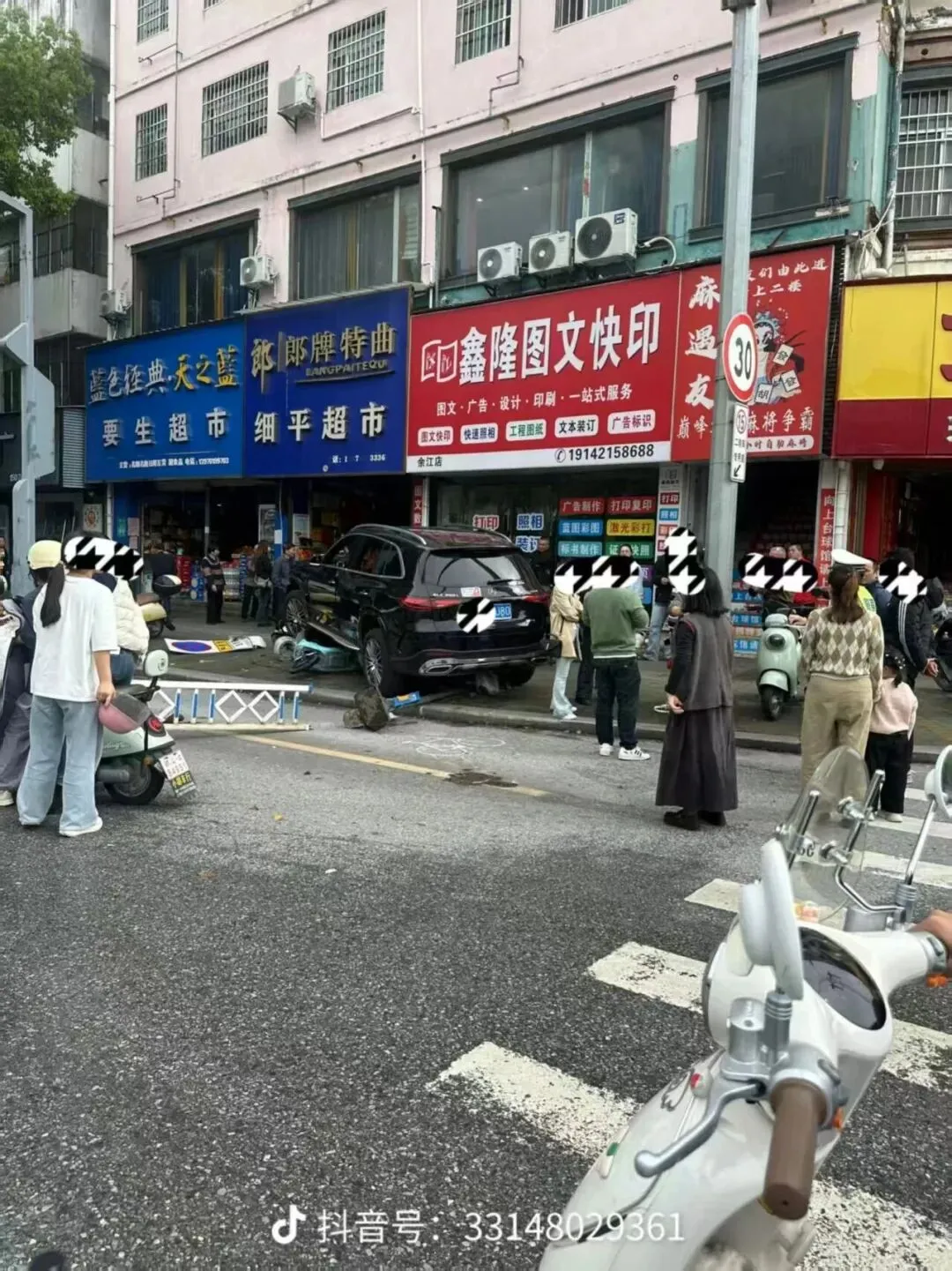 前两天,一起交通事故在鹰潭市余江区的城区发生,1辆鹰潭牌照的奔驰SUV车不知道因为什么原因,竟然冲出机动车道,朝路边商店的门口而去,碾压了不少电动车,现场情况和AI解读如下:这张图片记录了一起发生在街头的交通事故现场。