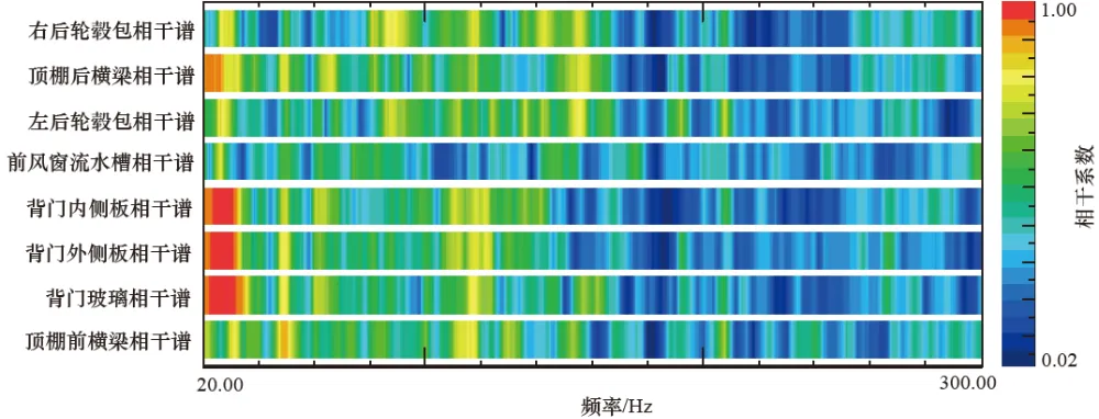、顶棚前横梁)振动之间的相干系数,分别为