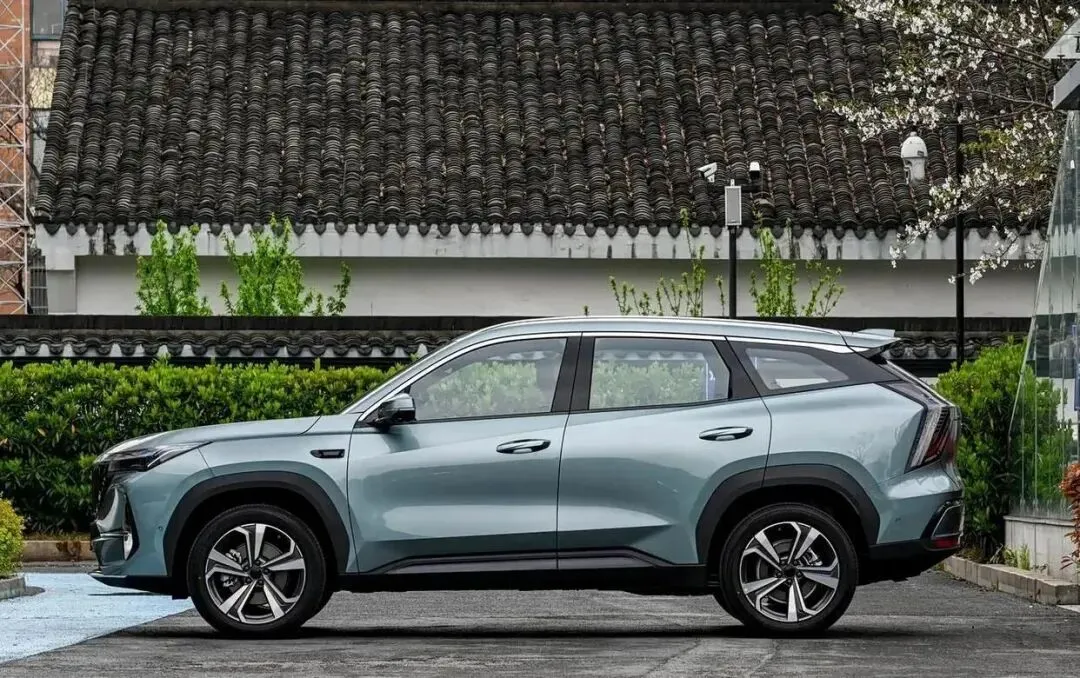 再来看车身侧面部分,修长的车身搭配流畅的腰线,从前翼子板延伸至车尾,营造出低趴动感的姿态。19英寸铝合金轮圈造型精致,进一步提升了整车的运动气质。新车新增的“晴山蓝”车色堪称点睛之笔。采用纳米级珠光颜料,历经23次调色试验,在阳光下呈现出“远观如晴空,近看似山峦”的渐变质感,灵感源自敦煌壁画中的青金石色,既彰显东方美学韵味,又满足了消费者对个性化的需求。车身尺寸方面,博越L小蓝灯版长宽高为4730mm×1910mm×1710mm,轴距达2785mm,在紧凑型SUV中优势明显。