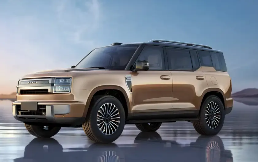 整体来看,该车的“方盒子”造型尽显硬派越野SUV之霸气。其中,方正的车头设计配合窄条幅式前格栅,带来明显的粗犷气场;侧面来看,整车线条平直,隆起的轮眉、简洁的腰线以及多条幅式轮辋极大提升了车辆高级感。此外,车顶配备的激光雷达显示其智能化程度也不低。