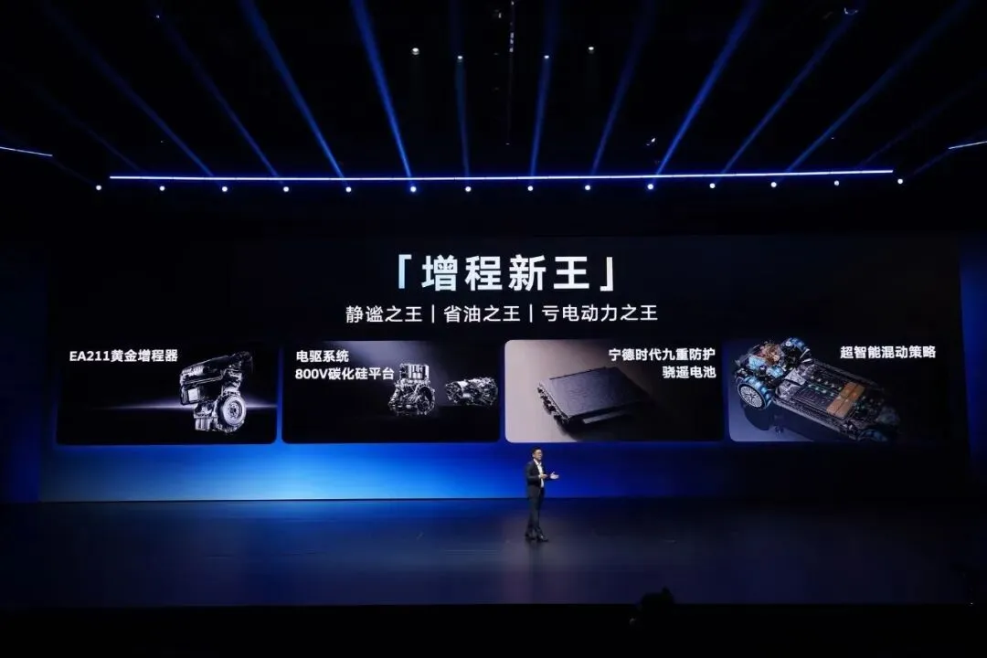 最后再看一下动力,ID.ERA 9X作为增程动力车型,大家之所以对它抱有期待是因为EA211发动机作为增程器,这个称得上内燃机时代的标杆之作,无论是可靠性还是经济性都没什么可吐槽。而且匹配电机之后,新车可带来5.6秒的性能体验,纯电续航里程至高可达406km,同样不比新势力们差,再加上800V高压平台打造,10%-80%电量补充也在20分钟内可完成。至于底盘,前双叉臂式+后多连杆式独立悬架是意料之中,而行云智能底盘可实现主动后轮转向,并提供蟹行模式,包括150mm行程闭式双腔空气悬架+DCC连续可变阻尼减振器,还有智能预瞄魔毯功能,更让操控性与舒适性值得期待。