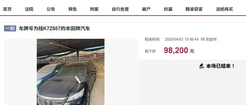丰田皇冠轿车,曾经也是一代神车,在国内曾经也是风光过,大卖过,不过最终还是走向了停产。近日,在玉林市司法拍卖市场上,出现了一辆绝版的丰田皇冠轿车被拍卖,出乎很多人预料,这辆二手非常抢手,最终拍出了高价。