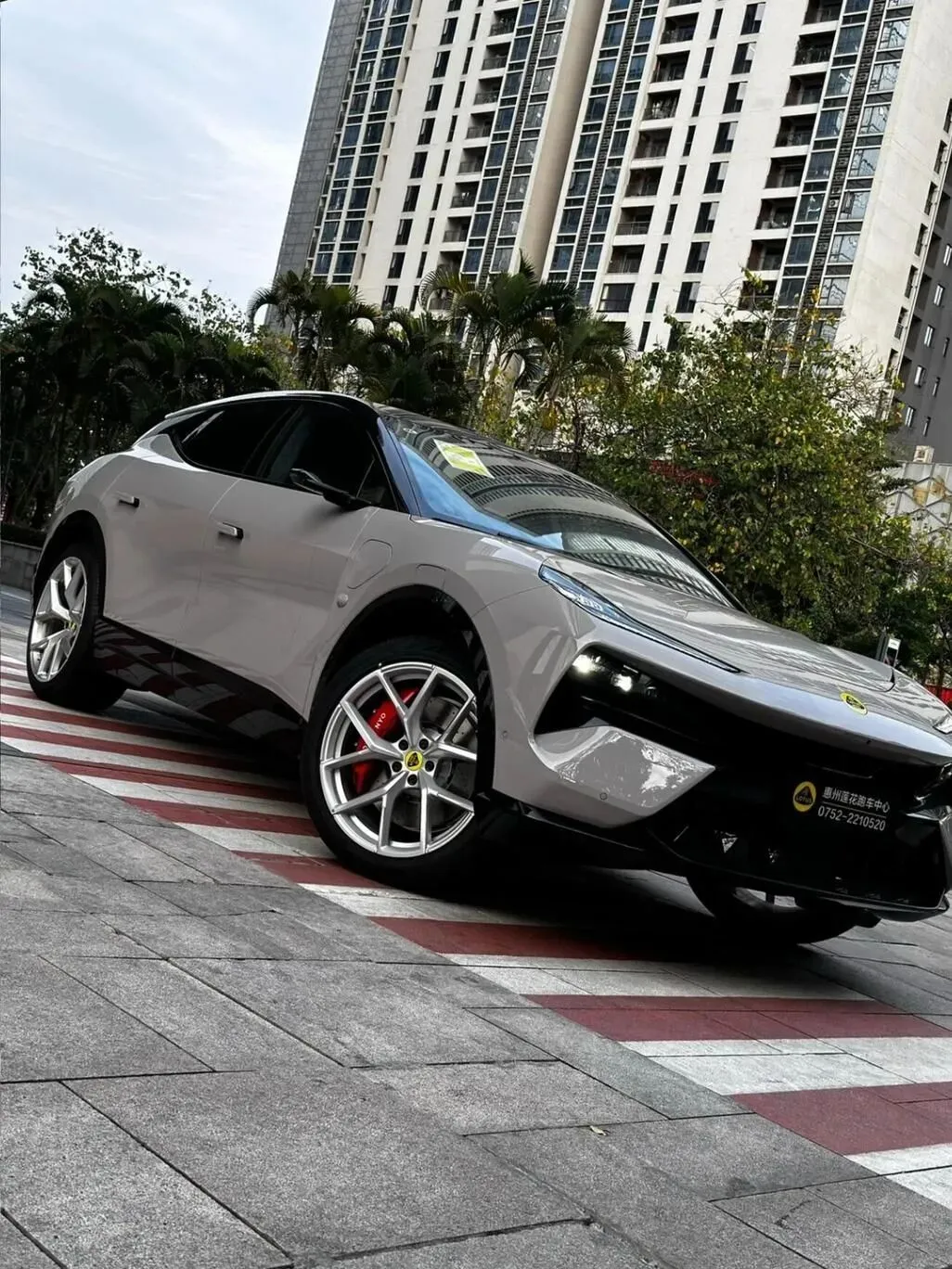 兄弟们好,这边刚下.过雨,地有点湿,然后我今天给大家把答应很久的一台车给写了,就是.这个莲花FOR ME,其.实就是Eletre R+。后台.一直有人催,说你不是老说喜欢底盘、喜.欢快嘛,那你.不上这台说不过去。行,今天就从我个人的一个真实感.受,公路加赛道,一.次.性聊明白。