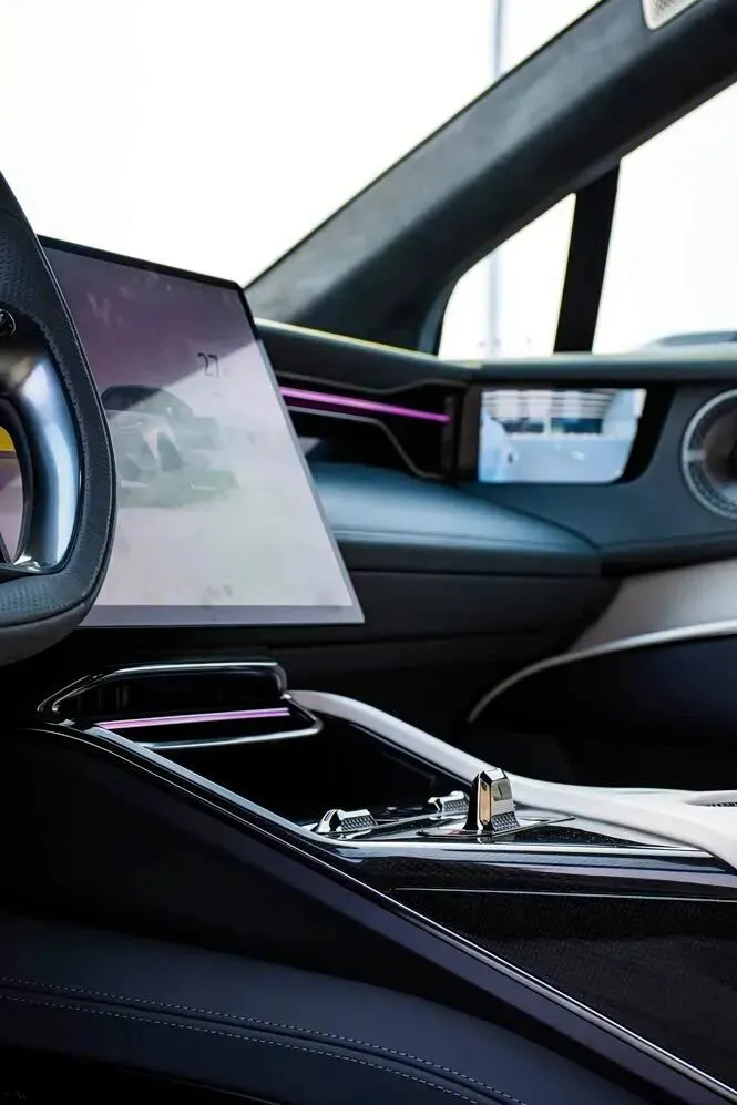 进到车里,我先说一句实话,内饰.的科.技感没问题,但我对细节有点强.迫症。你看这个中.控台,我用指甲敲一下,是软的,然后下.面这里,诶,这块.又有点偏硬,这个就很莲花,明明可以全部统一。方.向盘手.感.不.错,不震手,这点我要夸一下。座椅包裹性很强,我刚才.坐进去那一下,腰这块是被.托.住的,不是.陷进去。