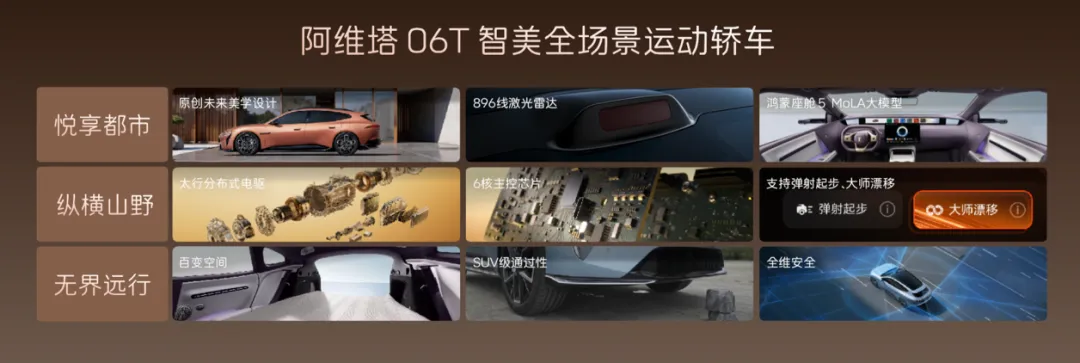 06T不仅快,更注重实用性。其搭载华为乾崑智驾与鸿蒙座舱HarmonySpace 5,内置MoLA大模型实现自然连续对话。