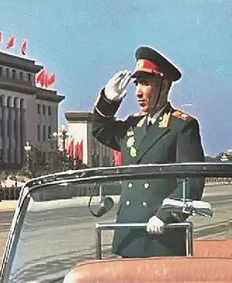 1959年10月1日,国庆10周年庆典上,林彪乘坐红旗敞篷车检阅三军。