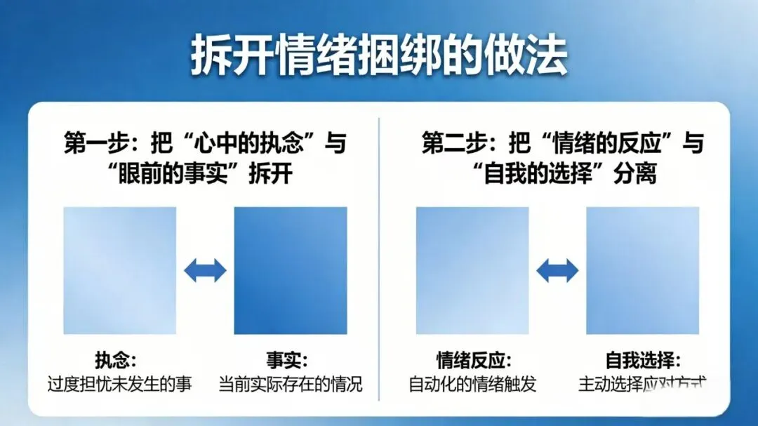 把“心中的执念”与“眼前的事实”拆开,把“情绪的反应”与“自我的选择”分离。